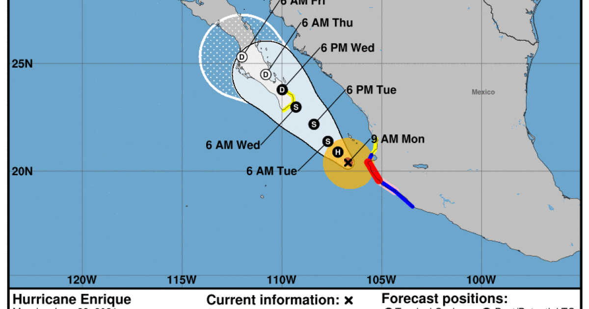 Tropical Storm Enrique which spent the weekend as the first hurricane of the eastern Pacific season was losing steam Tuesday as it headed for. Enrique the first hurricane of the 2021 Pacific tropical season continues to churn just offshore of Mexico. Tropical storm center located near 242n 1096w at 300900z position accurate within 30 nm present movement toward the northwest or 315 degrees at 8.